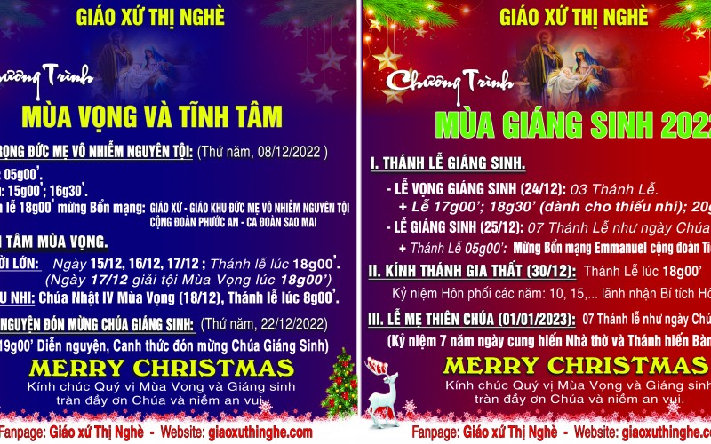 CHƯƠNG TRÌNH LỊCH LỄ MÙA VỌNG - TĨNH TÂM VÀ GIÁNG SINH 2022