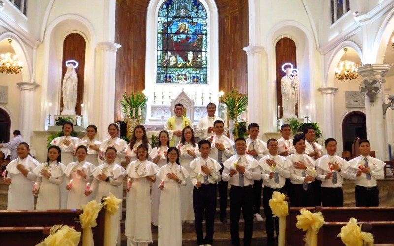 Tham dự Thánh lễ, ngoài 22 anh chị em tân tòng, còn có phụ huynh, cha mẹ đỡ đầu và giáo dân trong và ngoài Giáo xứ Thị Nghè.