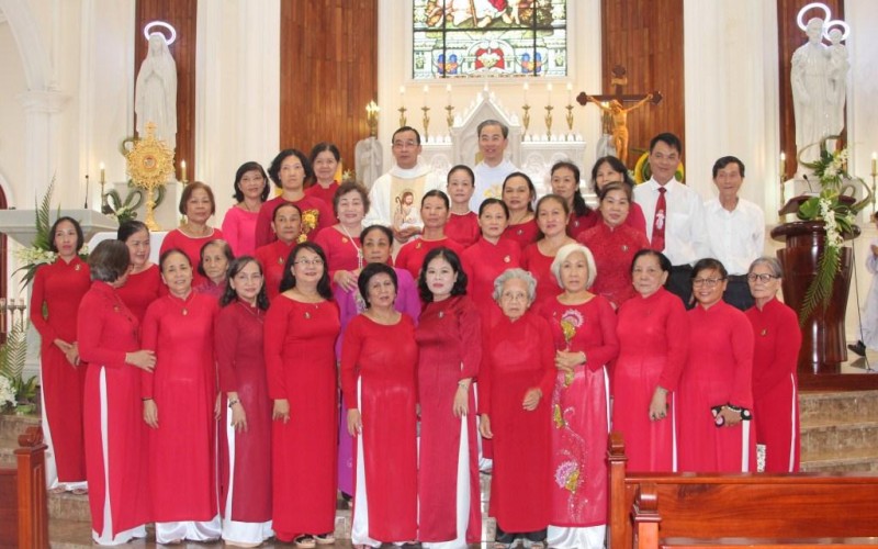 Sau đó, hai linh mục đồng tế đã chụp hình lưu niệm với các thành viên của cộng đoàn LTXC.